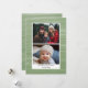 Utilisez 2 images horizontales et faites un accueil de vacances unique et tendance avec un motif abstrait simple et moderne dans l'arrière - plan. Il a un look peint avec un design de mouvement naturel dans les tons verts. Un design haut de gamme et subtil avec un espace pour ajouter deux photos de famille et le nom et l'accueil. Si vous avez besoin de déplacer quelque chose, cliquez sur le bouton personnaliser pour apporter des modifications.