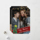 2 photos Joyeux Noël Carte de vacances Simple et élégante carte de voeux de vacances avec une photo personnalisable plein sang sur le devant avec croquis d'arbre de Noël et écrit à la main "Joyeux Noël !" en blanc sur un arrière - plan rouge foncé. Vous pouvez télécharger une autre de vos photos préférées et votre message de voeux personnel au verso de la carte.