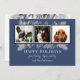 Customisez vos salutations de vacances avec vos photos d'animaux de compagnie préférées dans cet élégant design d'hiver aquarelle. Cette carte postale est parfaite pour se retrouver entre amis pendant la période des fêtes. Faites-le unique, composez votre propre salutation (ou utilisez notre préécriture), et ajoutez votre nom de famille et le nom de vos animaux de compagnie.