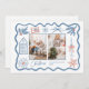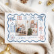 Ce design festif présente de charmantes lignes de style doodle en rouge et bleu, présentant des éléments de Noël classiques comme des branches de pin, des poinsettias, des ornements et un pick-up vintage. Les illustrations dessinées à la main apportent une touche ludique mais nostalgique, parfaite pour une fête de vacances confortable et fantaisiste.