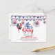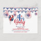4 juillet Calligraphie moderne Indépendance invitation carte postale pour célébrer la liberté avec vos amis et votre famille. Le design est composé de pétards, ballons, drapeau à tambour, le tout sur le thème du rouge, du bleu et du blanc. Le texte est facilement personnalisable.