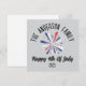 Ajoutez une touche festive à vos célébrations du 4 juillet et à votre réunion de famille/ Le design comporte un beau feu d'artifice, rouge blanc et bleu, C'est parfait pour bénir vos amis pour le 4 juillet! Le point culminant ? Un nom de famille personnalisé ! Ajoutez votre nom de famille au design, tel que "La famille Smith", créant une carte de vacances unique et réfléchie qui est vraiment à vous.