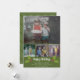Un collage de Noël amusant de 4 photos avec holly rétro et un chevron motif vert olive sur le dos.