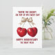 Celebrate your 4th anniversary with this charming fruit-themed greeting card! Featuring two cherries tied with a bow and the sweet message "You're the cherry on top of my every day," it’s perfect for the fruit year of marriage.