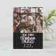 Capture the magic of your engagement with this modern and cozy holiday card. Featuring a bold white script on classic black, paired with your favorite winter photo, this design celebrates your first Christmas as an engaged couple in timeless style. Personalize with your names and the year for a heartfelt seasonal keepsake.