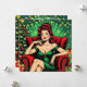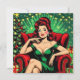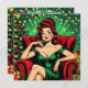 A funny retro Christmas card full of whimsy and sarcasm. A funny poem on the back. A pretty retro woman on the front. Pop art comic book style art.
