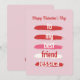 Joyeuse Saint-Valentin écrite en rose profond. En dessous, cinq patchs de couleurs avec les mots "à mon meilleur ami" écrits en minuscules. Le dernier patch de couleur est un endroit pour changer le nom par celui que vous souhaitez. La carte affichée est une version 5x7" à coins arrondis, mais il existe de nombreuses autres formes, tailles et types de papier parmi lesquels choisir.