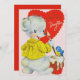 Cette vintage carte du milieu du siècle de la Saint-Valentin présente un adorable petit ours en peluche dans un flot de peinture jaune, un pinceau à la main et un oiseau bleu gazouillant joyeusement sur une peinture ouverte peut devant un coeur rouge fraîchement peint avec les mots "À une chère petite fille". Personnalisez en customisant le message au dos et/ou en ajoutant votre nom.