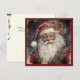 Cette image est une carte de Noël vintage représentant un Père Noël noir de style Rococo. La carte montre le Père Noël portant un manteau et un chapeau rouge prune avec des accents floraux roses. Les couleurs de l'image sont principalement le rouge, le blanc, le rose avec des accents de brun foncé. Le thème général de l'image est festif et traditionnel, représentant la figure emblématique du Père Noël pendant la saison des fêtes.