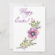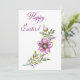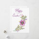 Célébrez Pâques avec cette magnifique carte de voeux peinte à la main et dotée d'un design floral traditionnel. Cette oeuvre met en valeur un arrangement gracieux de fleurs violettes aux accents bruns riches et à la végétation luxuriante, incarnant la beauté du printemps.