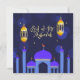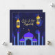 Custom Blue Unique Modern Elegant Eid al-fitr cartes de voeux avec la mosquée islamique Lantern, vous pouvez personnaliser les cartes Eid Moubarak avec les souhaits Eid Moubarak .
