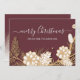 Carte de voeux unique, mignonne et décorative de la saison des Fêtes. Avec de jolis cônes de pin blanc et faux or coloré et des aiguilles arrangement floral design motif sur un arrière - plan rose mauve foncé classique. Avec de la place pour facilement customiser ou personnaliser avec votre nom de famille et le texte de votre choix.