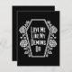 Ce design présente une esthétique gothique avec un cadre en forme de cercueil blanc et audacieux. A l'intérieur, l'expression **"Love Me Like My Demons Do"** est écrite en lettres gothiques frappantes. Autour du cercueil sont des roses blanches et des feuilles détaillés, ajoutant une touche sombre romantique et dramatique à l'oeuvre d'art.