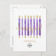 Souhaitez à vos meilleurs clients, employés et partenaires d'affaires un anniversaire très heureux avec cette élégante carte postale d'anniversaire d'entreprise moderne et simple, verticale, avec de grandes bougies d'aquarelle violette avec des flammes faux or et un texte écrit en partie à la main heureux anniversaire sur un arrière - plan blanc propre. Veuillez noter que l'or dans ce design est une impression couleur plate et n'est pas une feuille d'or réelle. Mais il y a aussi de vraies versions de feuille d'or de cette carte postale disponible, vérifiez dans la collection ou contactez le Créateur pour le lien direct. À l'avant et à l'arrière se trouve le texte personnalisé et un endroit pour votre logo personnalisé. Parfait pour tous les types d'entreprises.