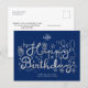 Customisez cette carte postale d'anniversaire Business Happy Birthday, originale et originale, avec du texte en argent et des éléments de décoration de fête d'anniversaire dessinés à la main sur un élégant arrière - plan bleu marine foncé. Veuillez noter que l'argent dans ce design est une impression couleur gris plat et n'est pas une véritable feuille métallique. Changez l'image "votre logo ici" avec votre logo. Répétez pour le côté arrière. N’oubliez pas de customiser le côté avant et le côté arrière du texte, il inclut toutes les informations de contact de votre entreprise. De cette façon, cette carte postale fonctionne aussi comme une carte de profil de complany d'affaires amusante. La couleur bleu marine de l'arrière - plan est personnalisable et peut être changée en n'importe quelle autre couleur pour correspondre à votre schéma de couleurs d'entreprise. Carte postale Joyeuse d'anniversaire pour les employés, les partenaires d'affaires et les clients. Ce produit est conçu comme un modèle pour votre personnalisation en ligne facile.
