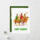 Carte de vacances Alebrijes art populaire Trois Rois Mages entièrement personnalisable. Le design est un Alebrijes art populaire d'Amérique centrale Trois Rois Mages aux couleurs vives rouge, or et vert. Personnalisation facile de tout le texte et de l'image au verso, y compris les polices et les couleurs de fond lorsque vous personnalisez avec l'outil de conception.