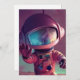 Petit mignon alien portant une combinaison astronaute rouge vous saluant