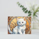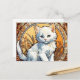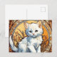 Carte postale avec un chat dans le style d'Alphonse Mucha ! Ce chaton blanc moelleux regarde adorablement le spectateur. Des fleurs décorent la scène. Un cadeau parfait pour les amoureux de les chats et les collectionneurs Art Nouveau !