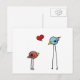 Couples mignons d'un oiseau rouge et d'un oiseau bleu dans l'amour avec un petit coeur rouge, image tirée par la main d'oiseau de petites birdies douces avec de longues jambes étant amoureuses. Changez la couleur d'arrière - plan de cette carte postale d'amour en cliquant sur sur la personnaliser, puis l'éditez.