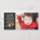 Ce magnifique carte photo de vacances présente des animaux de bois aquarellés (un oiseau, un cerf, un écureuil et un lapin), un sapin de Noël, de la verdure, des baies et des étoiles sur un arrière - plan noir muet. La typographie élégante dit : "C'est le moment le plus merveilleux de l'année !"