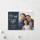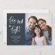 Ce carte photo Happy Hanoukka de couleur bleu foncé, simple et élégant, présente un script manuscrit blanc moderne qui dit "Amour et lumière", et l'étoile de David, avec votre photo personnelle préférée.
