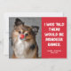 Faites de votre chien de compagnie ou chat le centre de vos Cartes de fin de année cette année avec la carte de Noël photo mignonne et drôle. Ce dessin présente un accueil humoristique de votre animal de compagnie ludique : "On m'a dit qu'il y aurait des jeux de rennes", sur un arrière - plan rouge avec une grande photo de votre animal. Utilisez le bouton "Modifier à l'aide de l'outil de conception" pour redimensionner et déplacer le nez de renne rouge pour se positionner sur le nez de votre animal. Laissez les jeux de rennes commencer par cette carte de Noël mignonne et drôle !