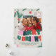 Répandez la fête de Noël avec cette carte de voeux photo "Joyeux et brillant"! Dotée d'un design dynamique et festif, cette carte présente une police rétro multicolore ludique et audacieuse sur un arrière - plan vert beige, faisant ressortir votre message de vacances. Le coin supérieur droit est orné d'un ornement de Noël fantaisiste et de l'année, apportant une touche de charme saisonnier. La carte est entièrement personnalisable, vous permettant de changer toutes les couleurs pour correspondre à votre style personnel ou à votre thème de vacances. La section photo montre un moment familial, chéri, entouré d'accents blancs festifs comme des flocons de neige et des feuillages de vacances. Le message plein d'esprit au fond apporte une touche légère, assurant que votre salutation apporte sourires et joie. Parfait pour partager vos souhaits chaleureux et vos souvenirs spéciaux, cette carte allie plaisir, personnalisation et esprit festif dans un ensemble enchanteur.