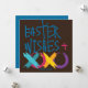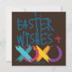 Envoyez à tous vos favoris des "Voeux de Pâques, des Hugs & des Baisers" ! Souhaitez à votre famille et à vos amis une "Pâques heureuse" avec cette carte de vacances de Pâques colorée "Voeux de Pâques, Enceintes et Baisers". C'est simple ! C'est amusant ! Un peu excentrique ! Un peu de grogne ! Pâques souhaits sur le devant sur un arrière - plan couleur chocolat avec une couleur bleu rouge rouge sur le dos Personnalisez-le et faites-le votre propre plaisir, Pâques "Fru"