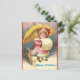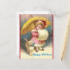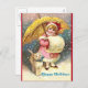 Cartes Pour Fêtes Annuelles Ancienne Fille Image, Neige, Chat, Parapluie Jaune