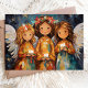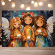 Cette carte de Noël chaleureuse présente trois anges adorables, chacun tenant une bougie et portant des couronnes florales festives. Avec un style fantaisiste et serein, ces anges dégagent la paix et la joie, ce qui rend cette carte parfaite pour envoyer des vœux de vacances réfléchis. Les tons chauds et l'éclairage doux créent une atmosphère cosy et magique, sûre de mettre un sourire sur le visage de quiconque cette saison de Noël.