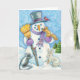 Cartes Pour Fêtes Annuelles Animaux mignons construisant un bonhomme de neige