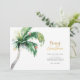 Annonce de déménagement pour les fêtes de Noël avec un palmier côtier que vous pouvez facilement personnaliser en cliquant sur le bouton "Personnaliser". Ajoutez votre message personnalisé et vos noms au verso