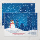 Envoyez vos vœux de vacances en avance et informez votre famille et vos amis de votre nouvelle adresse avec cette carte charmante. Elle représente un bonhomme de neige souriant et une silhouette de ville avec beaucoup de neige qui tombe.