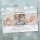 Partagez la joie d'une naissance à Noël avec cette élégante carte moderne d'annonce de naissance pour les fêtes. Personnalisez le recto avec vos 3 photos spéciales, le nom du bébé, les détails de naissance et le message de Noël, sur un joli fond givré à flocons de neige. Conçu par Thisisnotme©