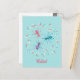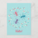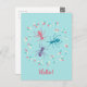 Carte postale de fourmis mignonnes dans les tons pastel avec une illustration vectorielle de trois fourmis en bleu, violet et rose entourée de feuilles colorés sur un arrière - plan bleu clair et le texte personnalisable "Hello!". Ce design joli et amusant séduira une personne qui aime ces insectes extraordinaires, la faune et la nature.