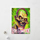 La conception d'Halloween de zombie a l'air réaliste et grotesque, et le fond vert crée un sentiment de menace.