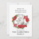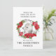 Aquarelle dessinée à la main d'une tête de caniche blanche et élégante encadrée d'une belle couronne de fleurs de Poinsettia et de branches de la nature. Cette carte fait sourire chaque amoureux des chiens et montre que le chien fait partie d'une famille aimante. Échangez la phrase de sentiment et personnalisez-la avec votre nom de famille ou seulement le nom du chien.