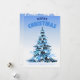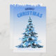 Cette carte de vacances présente un sapin de Noël couleur bleu serein orné d'accents argentés chatoyants et de lumières glacées douces. L'arbre est entouré d'un tapis glacé aux tons bleu et blanc cool. Personnalisez la carte en ajoutant votre salutation personnalisée et votre nom de famille pour un souvenir de vacances vraiment unique.