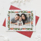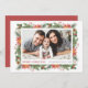 Joyeux Noël! Envoyez vos souhaits et vos salutations de vacances à votre famille et à vos amis avec cette carte à plat de Noël florale personnalisable. Il comprend des pinecones aquarelle, des aiguilles de pin, des saints, des baies et des poinsettia. Personnalisez en ajoutant des noms, des messages et une photo horizontale. Ce carte photo de vacances fleuri vintage est disponible dans d'autres cartons.