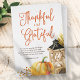 Ajoutez un salut Thanksgiving de votre famille. Le design se compose de citrouille d'automne, lanterne vintage et cornucopie. Un extrait de la "Prière d'Action de grâce" de Ralph Waldo Emerson Pour chaque nouveau matin avec sa lumière, Pour le repos et l'abri de la nuit, Pour la santé et la nourriture, Pour l'amour et les amis, Pour tout ce que Ta bonté envoie.