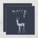 Une carte de Noël moderne minimaliste et neutre en ardoise bleue conçue avec un renne en cristal d'aquarelle peint à la main et une typographie moderne.