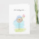 C'est une petite carte d'anniversaire douce avec un effet aquarelle illustrant un petit oiseau mignon, rotonde, à pattes longues, portant un casquette bleu disquette et tenant quelques fleurs roses. Conception par Natalie Kinnear Conception et illustration par Natalie Kinnear