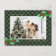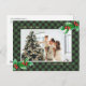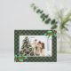 Elégante carte postale de Noël avec cadre photo en plastique de buffle vert orné d'une aquarelle représentant des saints et des baies. Personnalisez facilement cette carte postale verte Joyeux Noël avec votre image, et texte.