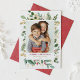 Célébrez la saison avec notre carte de Noël photo personnalisable, magnifiquement conçu avec de l'aquarelle de verdure d'hiver et d'élégants accents faux feuille d'or. Cette carte de Noël offre une touche élégante et personnalisée à vos salutations de vacances. Parfait pour les familles, les couples ou les amis, ajoutez votre photo préférée et un message personnalisé. Que vous envoyiez des souhaits à votre famille, à vos amis ou à vos collègues, notre carte de Noël en photo botanique vous offre une façon étonnante et personnalisée de répandre la joie des vacances. Le design de verdure hivernale saisit l'essence de la saison, et la fausse feuille d'or ajoute juste la bonne quantité d'élégance pour faire ressortir votre carte.