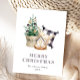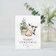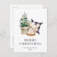 Cette carte postale rustique et confortable présente une aquarelle illustrant des coussins de style ferme, un arbre de Noël miniature et une minuscule maison. Les mots "MERRY CHRISTMAS" apparaissent dans des lettres serif grises qui se coordonnent avec l'art. Ajoutez le nom de votre famille et l'année en italique gris charbon, et votre adresse de retour sur le dos.