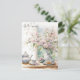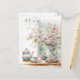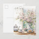 Célébrez la beauté du printemps avec cette carte postale à l'aquarelle Hello Spring, douce et picturale, représentant de délicates fleurs roses disposées dans un vieux pichet en céramique à côté d'un service à thé confortable. Réalisée dans une palette pastel aérienne de rose blush, de bleu poudre, de vert sauge, de crème et de tons neutres chauds, cette œuvre d'art capture le charme de l'esthétique cottagecore et de l'illustration de nature morte inspirée de l'Europe.