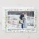 Elégante aquarelle moderne Bleu et blanc Floral Joyeux Noël Mariage Photo Holiday Card inclut des feuilles botaniques d'hiver, des baies bleues, des fleurs bleues, du coton et des baies rouges.