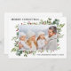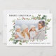 Elégante aquarelle Winter Greenery Joyeux Noël Photo Holiday Card comprend des feuilles d'eucalyptus et des baies rouges sèches.