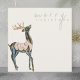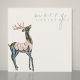 Une carte de Noël unique et moderne conçue avec un renne irisé aquarelle peint à la main et une typographie moderne.