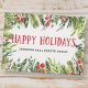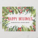Le design est composé de feuillage et de baies en aquarelle. Salutation de Noël en cursive ludique. Ajoutez votre propre message à l'arrière. Disponible ici : http://www.zazzle.com/store/selectpartysupplies